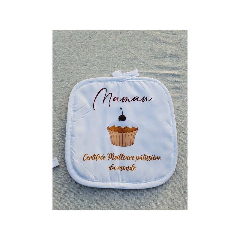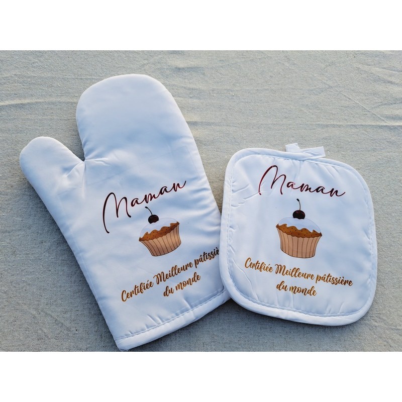 Gant et manique "Maman certifiée meilleure pâtissière du monde" - Personnalisable
