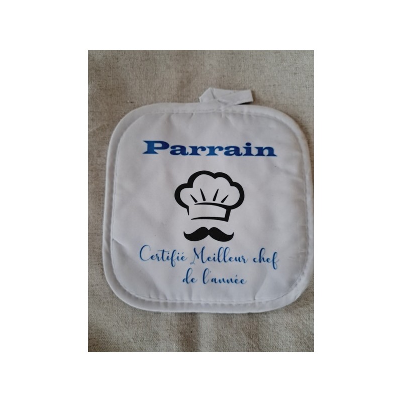 Mettez à l’honneur les talents culinaires de votre parrain avec ce lot de gant et manique personnalisés. L’inscription "Parrain certifié meilleur chef de l'année" est une façon amusante et touchante de célébrer ses moments en cuisine.