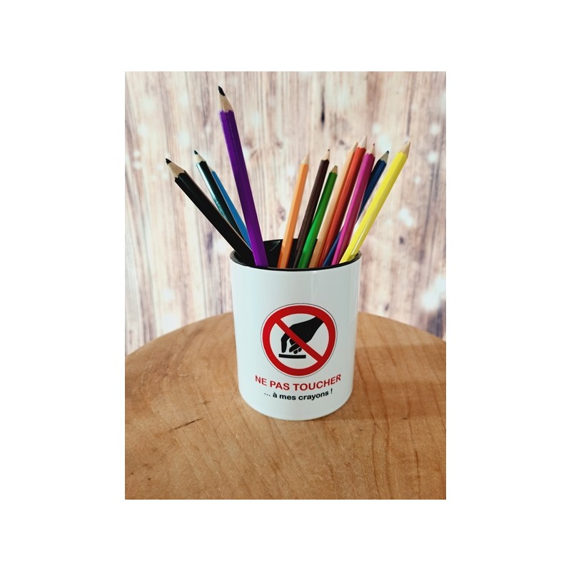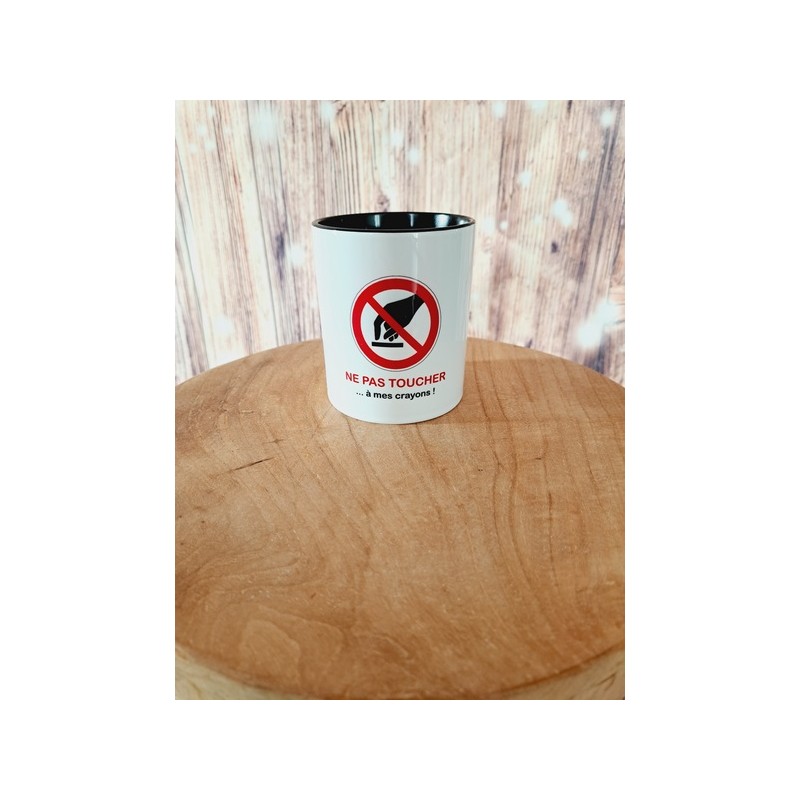 Pot à crayons "Ne pas toucher à mes crayons" intérieur noir