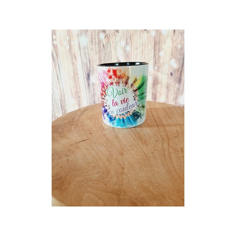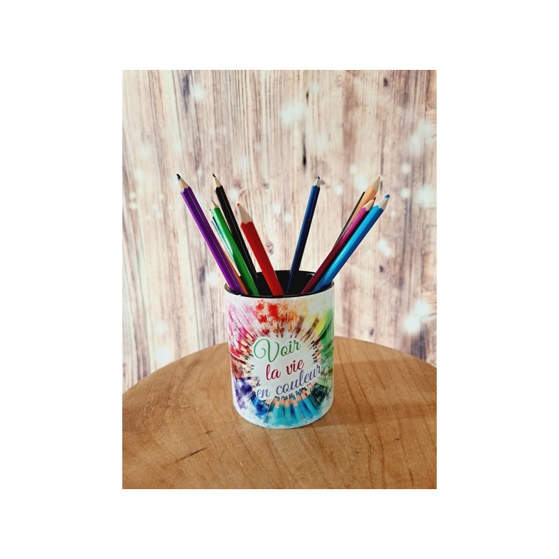 Pot à crayons "Voir la vie en couleur" - Intérieur noir