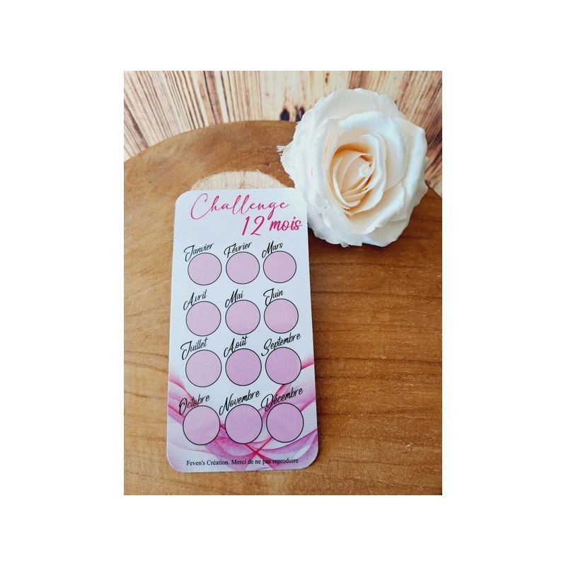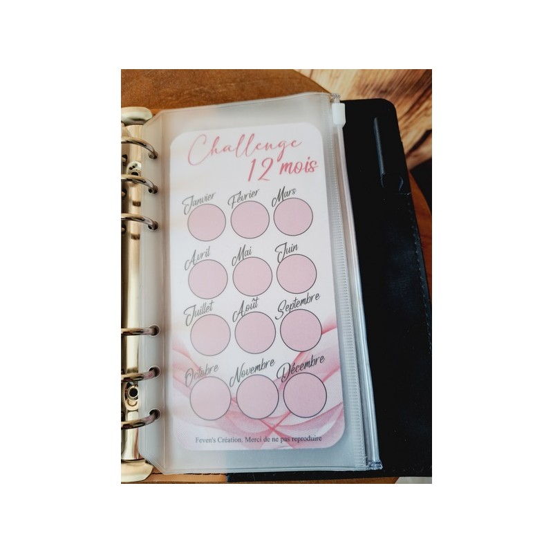 Fiche plastifiée mini défi/challenge pour enveloppe budgétaire. Pour écrire, le mieux est d'utiliser un marqueur effaçable afin de pouvoir réutiliser cette fiche une fois le défi terminé.