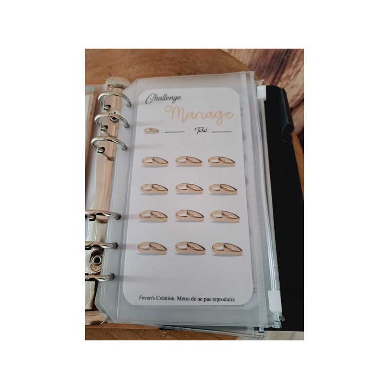 Fiche plastifiée mini défi/challenge pour enveloppe budgétaire. Pour écrire, le mieux est d'utiliser un marqueur effaçable afin de pouvoir réutiliser cette fiche une fois le défi terminé.