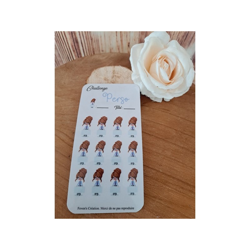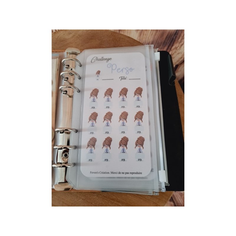Fiche plastifiée mini défi/challenge pour enveloppe budgétaire. Pour écrire, le mieux est d'utiliser un marqueur effaçable afin de pouvoir réutiliser cette fiche une fois le défi terminé.