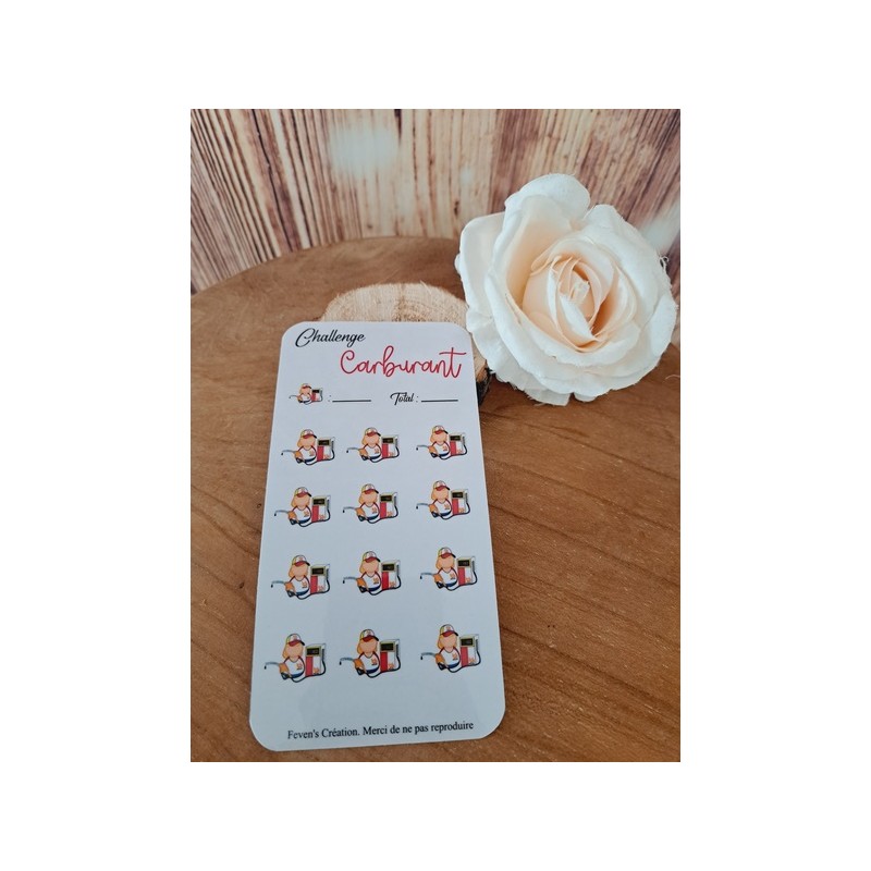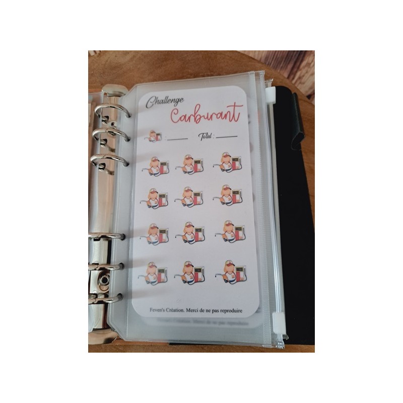 Fiche plastifiée mini défi/challenge pour enveloppe budgétaire. Pour écrire, le mieux est d'utiliser un marqueur effaçable afin de pouvoir réutiliser cette fiche une fois le défi terminé.