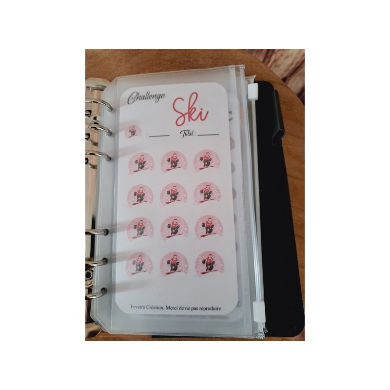 Fiche plastifiée mini défi/challenge pour enveloppe budgétaire. Pour écrire, le mieux est d'utiliser un marqueur effaçable afin de pouvoir réutiliser cette fiche une fois le défi terminé.