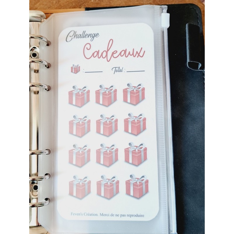 Fiche plastifiée mini défi/challenge pour enveloppe budgétaire. Pour écrire, le mieux est d'utiliser un marqueur effaçable afin de pouvoir réutiliser cette fiche une fois le défi terminé.
