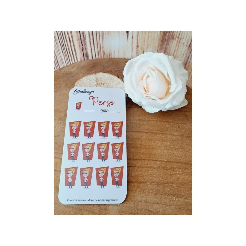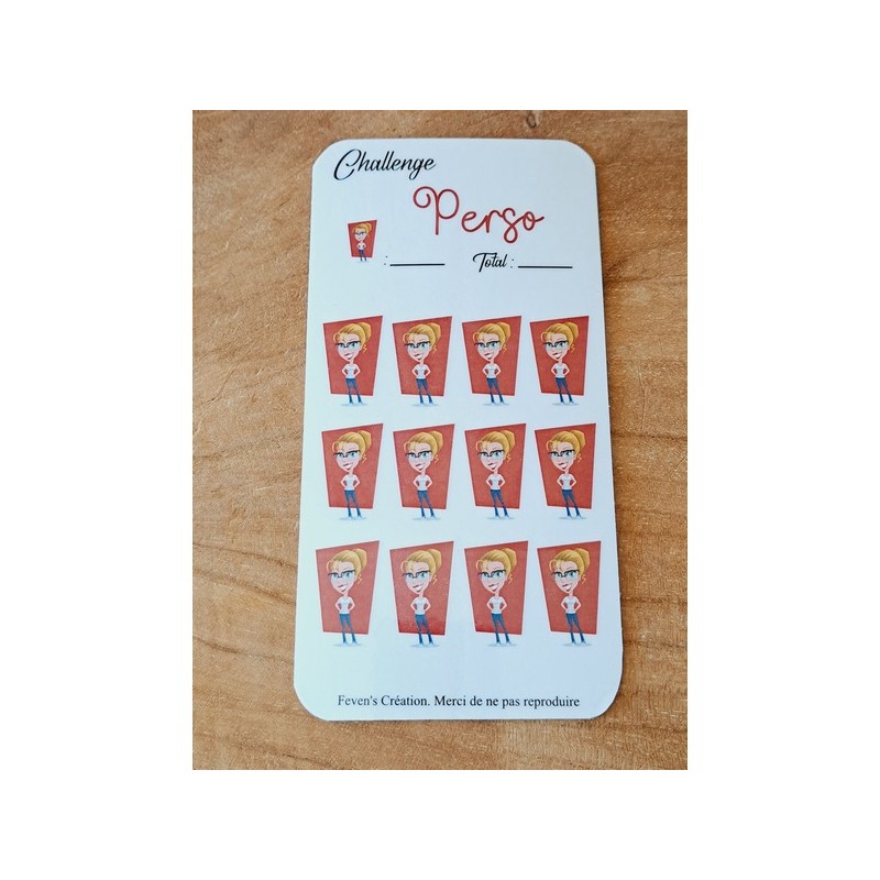 Fiche plastifiée mini défi/challenge pour enveloppe budgétaire. Pour écrire, le mieux est d'utiliser un marqueur effaçable afin de pouvoir réutiliser cette fiche une fois le défi terminé.