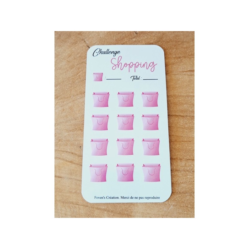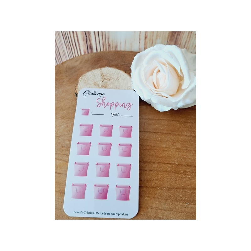 Fiche plastifiée mini défi/challenge pour enveloppe budgétaire. Pour écrire, le mieux est d'utiliser un marqueur effaçable afin de pouvoir réutiliser cette fiche une fois le défi terminé.