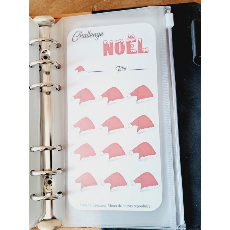 Fiche plastifiée mini défi/challenge pour enveloppe budgétaire. Pour écrire, le mieux est d'utiliser un marqueur effaçable afin de pouvoir réutiliser cette fiche une fois le défi terminé.