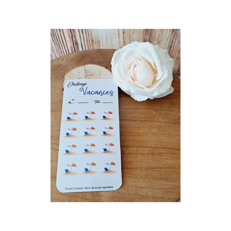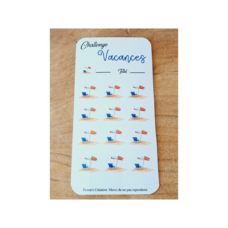 Fiche plastifiée mini défi/challenge pour enveloppe budgétaire. Pour écrire, le mieux est d'utiliser un marqueur effaçable afin de pouvoir réutiliser cette fiche une fois le défi terminé.