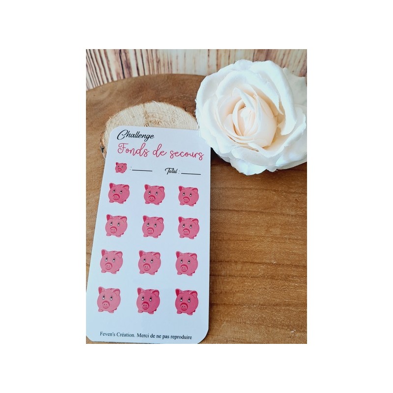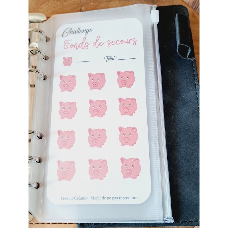 Fiche plastifiée mini défi/challenge pour enveloppe budgétaire. Pour écrire, le mieux est d'utiliser un marqueur effaçable afin de pouvoir réutiliser cette fiche une fois le défi terminé.