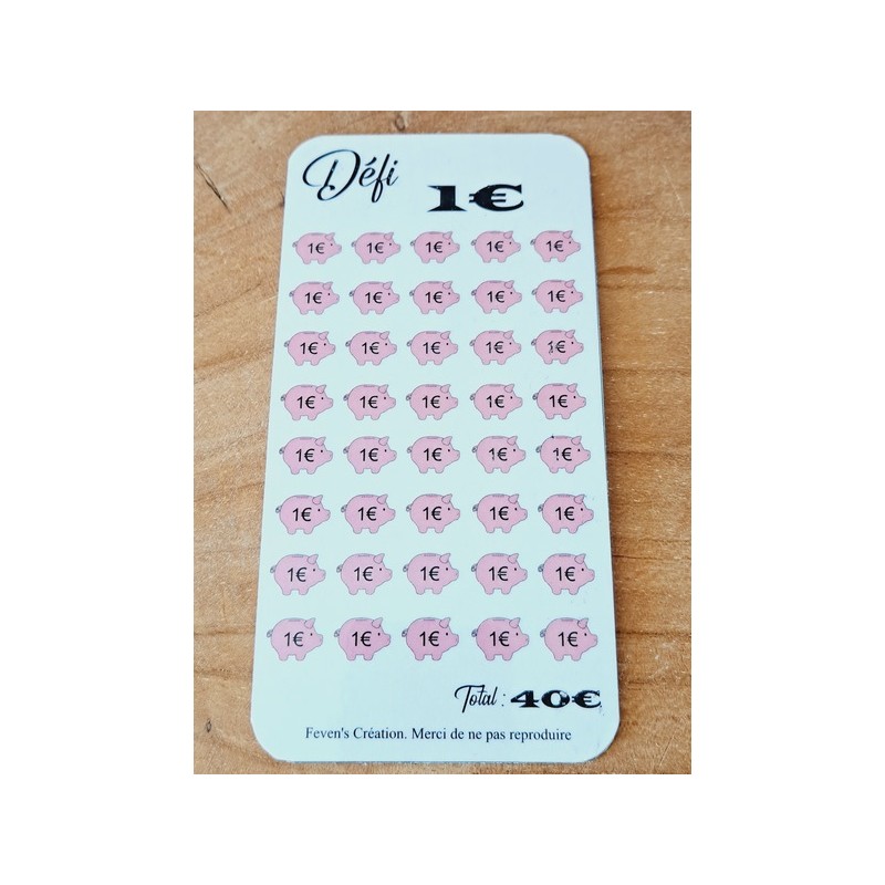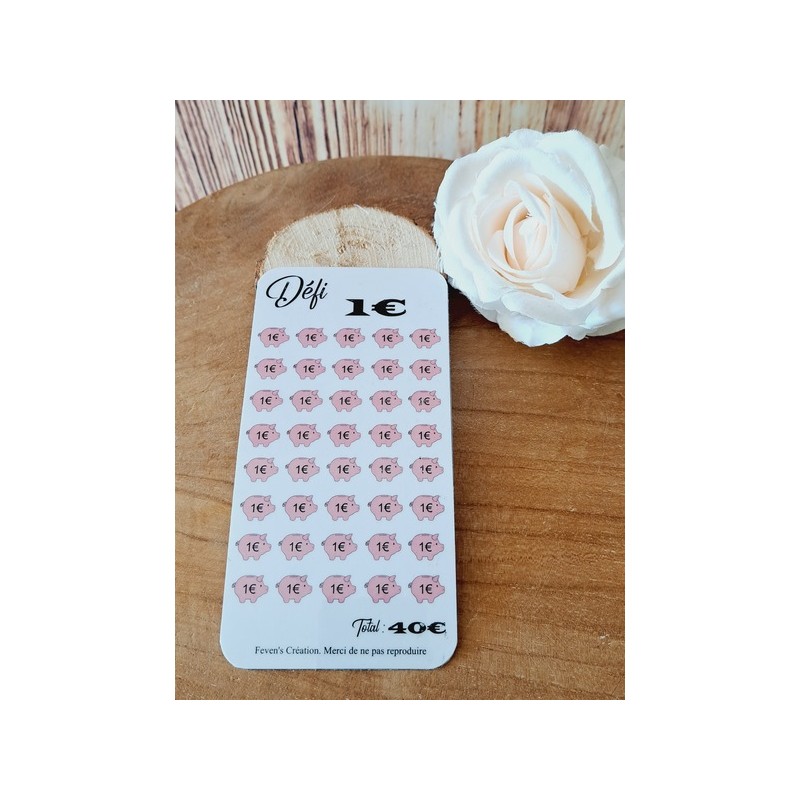 Fiche plastifiée mini défi/challenge pour enveloppe budgétaire. Pour écrire, le mieux est d'utiliser un marqueur effaçable afin de pouvoir réutiliser cette fiche une fois le défi terminé.