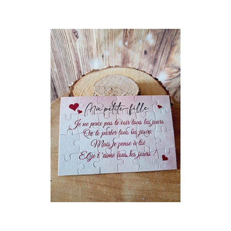 Le puzzle est livré avec un petit sachet en jute (le sachet peut être, beige, rouge, etc...)