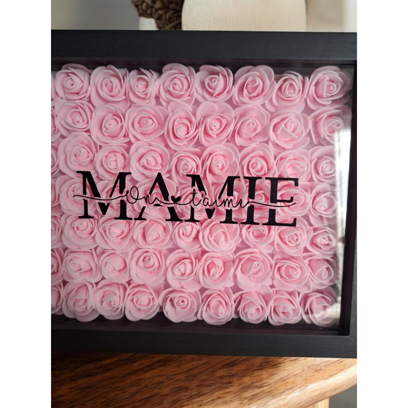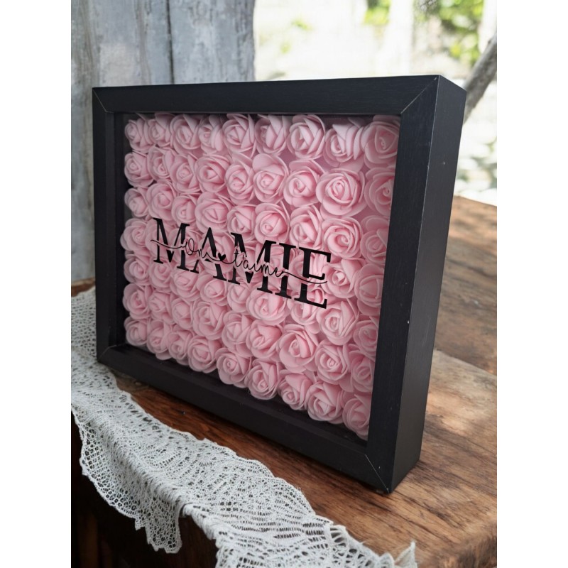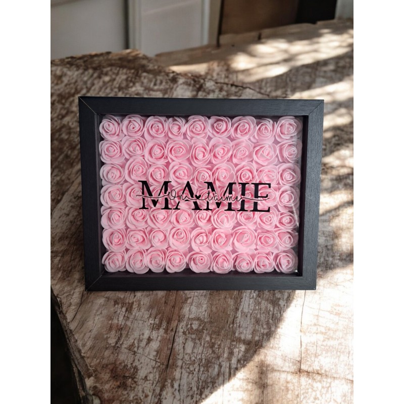 Célébrez l'amour et la tendresse envers votre mamie avec ce joli cadre fleuri personnalisé. Arborant l'inscription "Mamie on t'aime", ce cadre de 27 x 22 cm est le cadeau parfait pour la fête des grands-mères, un anniversaire ou tout simplement pour lui rappeler combien elle est précieuse.