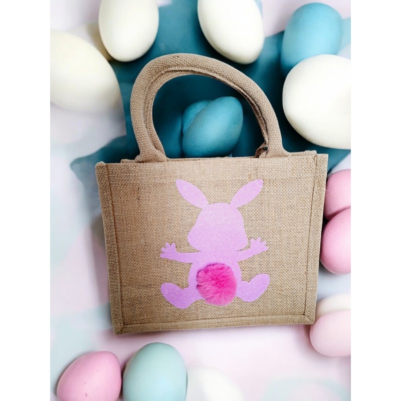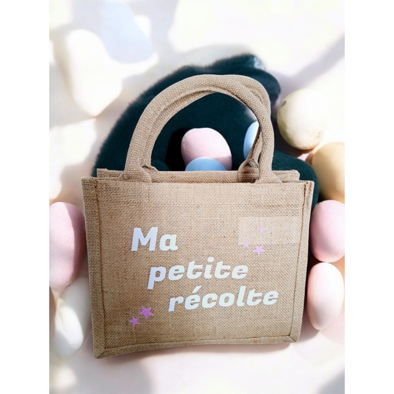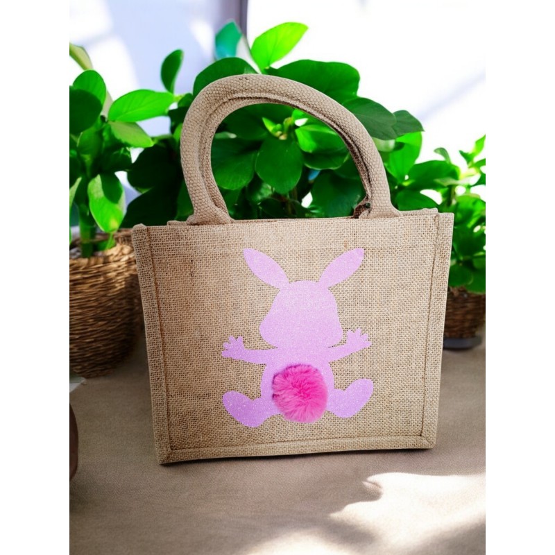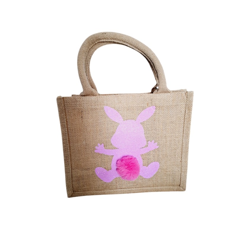 Sac Jute pour Pâques "Ma petite récolte" - Lapin rose
