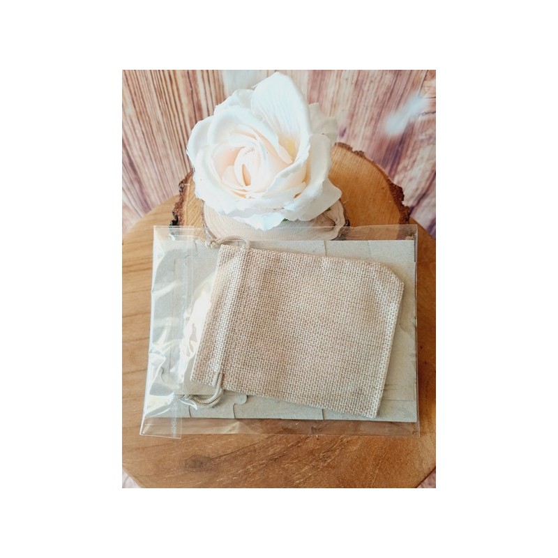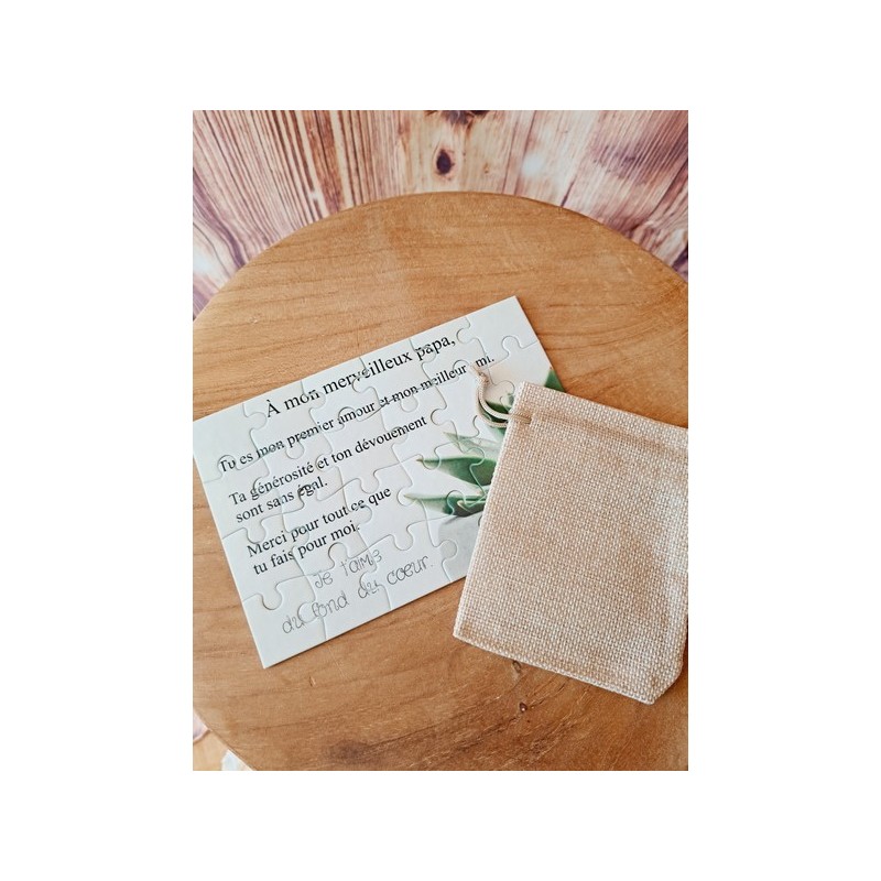 Le puzzle est livré avec un petit sachet (le sachet peut être, beige, rouge, argenté etc...)
