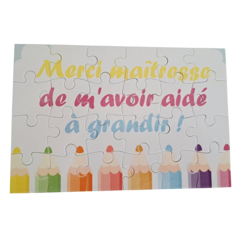 Exprimez votre gratitude de manière unique et mémorable avec notre puzzle de 24 pièces spécialement conçu pour remercier les maîtresses d'école en fin d'année.