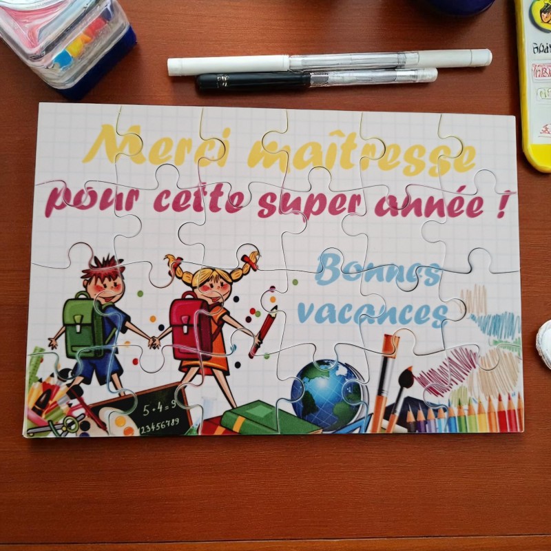 Exprimez votre gratitude de manière unique et mémorable avec notre puzzle de 24 pièces spécialement conçu pour remercier les maîtresses d'école en fin d'année.