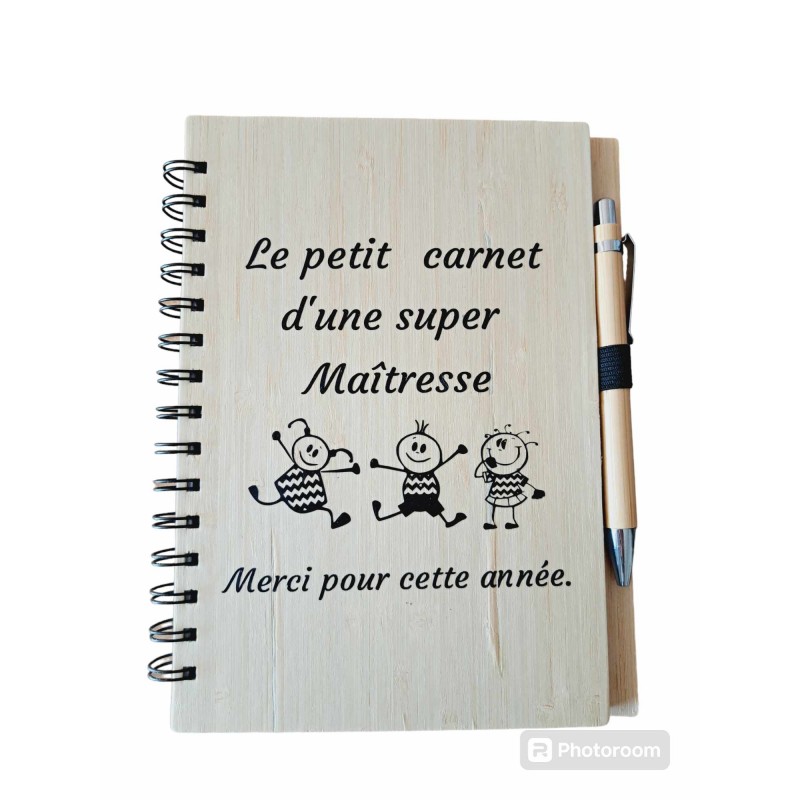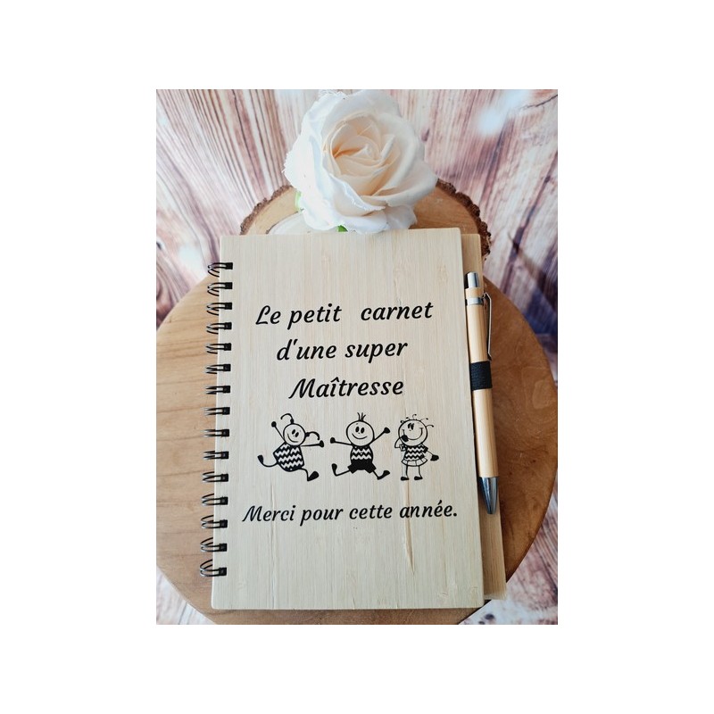 Cahier en bambou avec Stylo assorti - Le petit carnet d'une super maîtresse
