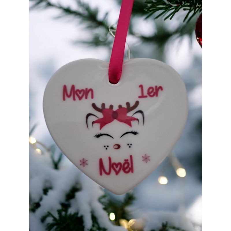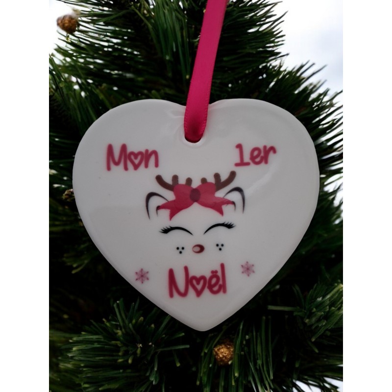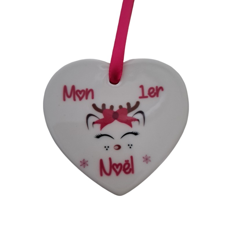 Mon 1er Noël - Ornement /Suspension Céramique coeur