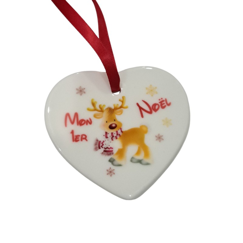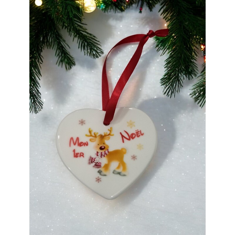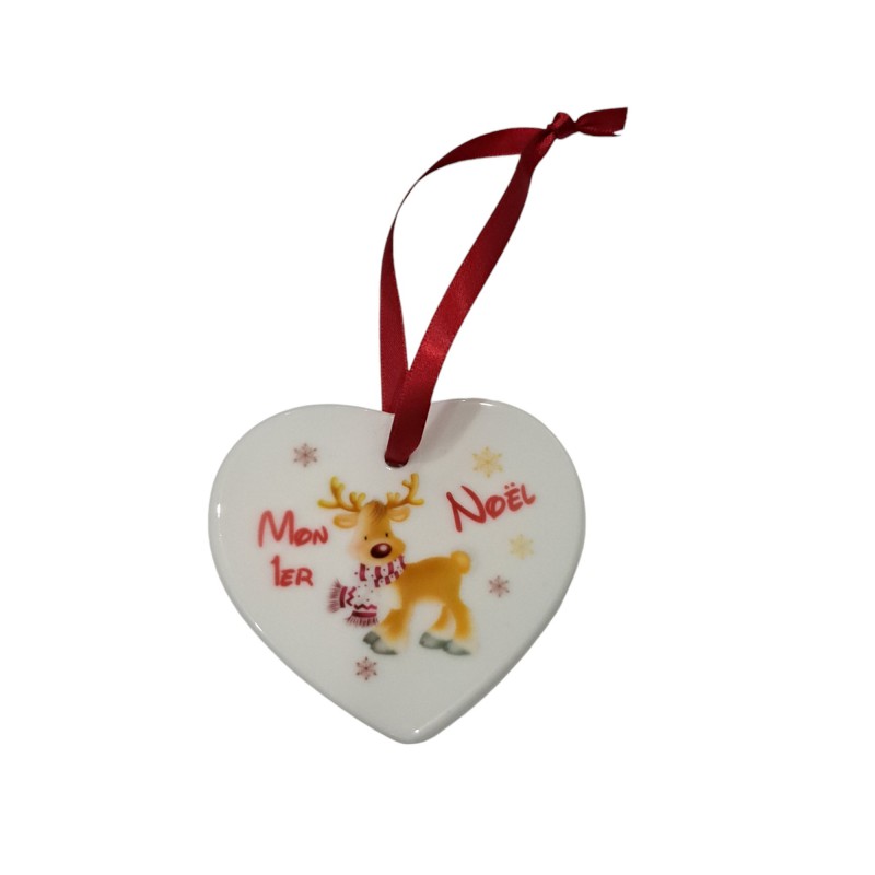 Mon 1er Noël - Ornement /Suspension Céramique coeur