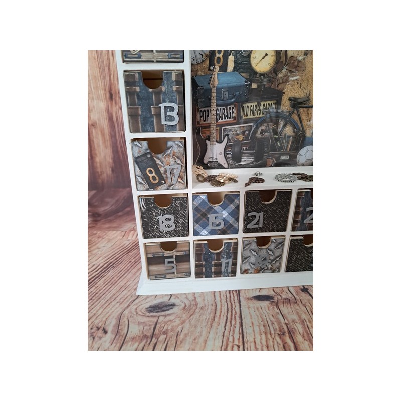 Plongez dans l'univers de la musique et de l'atelier garage avec ce calendrier de l'Avent unique et personnalisé ! Chaque jour, ouvrez une petite case pour découvrir une nouvelle surprise inspirée de ces deux univers captivants. Idéal pour les amateurs de sons et de mécanique, ce calendrier apportera une touche originale et festive à votre mois de décembre.