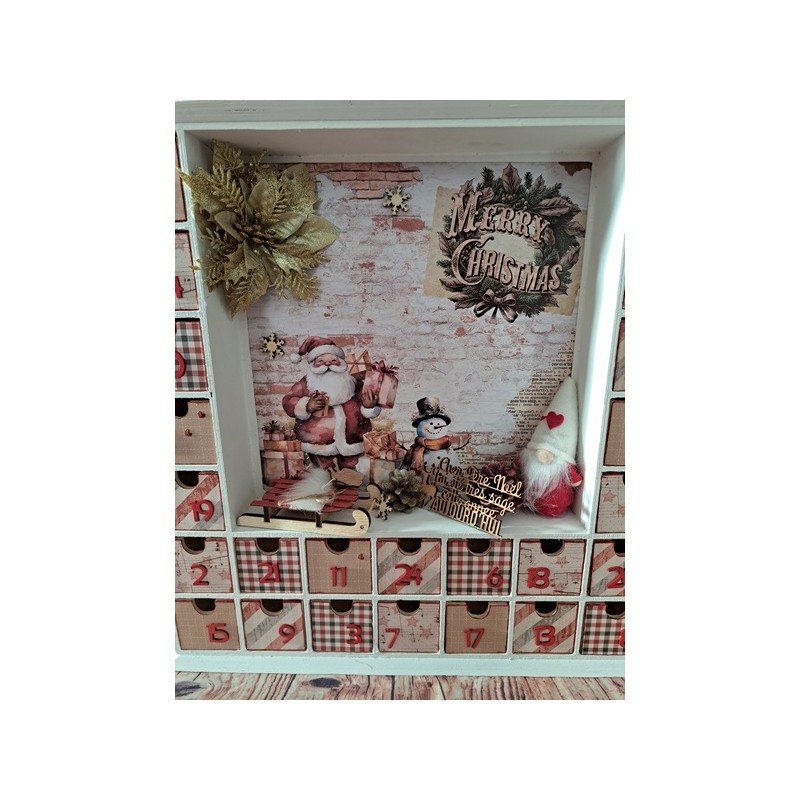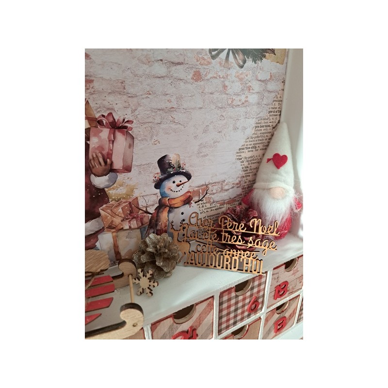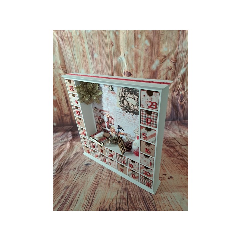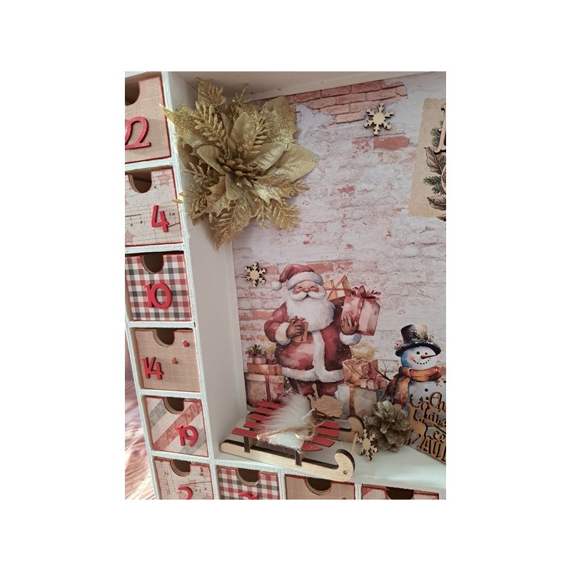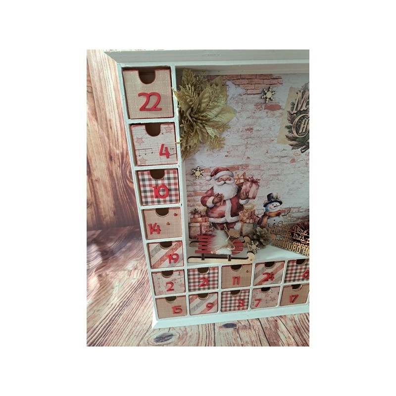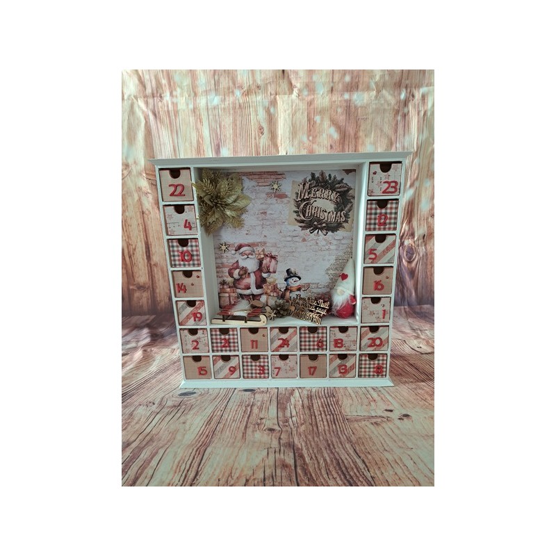 Attendez Noël avec magie grâce à notre calendrier de l’Avent en bois sur le thème du Père Noël ! Ce calendrier unique est entièrement personnalisable pour ajouter une touche personnelle à votre décoration de Noël. Derrière chaque petite porte, cachez des surprises, des chocolats ou de petits cadeaux pour rendre chaque jour de décembre encore plus excitant.