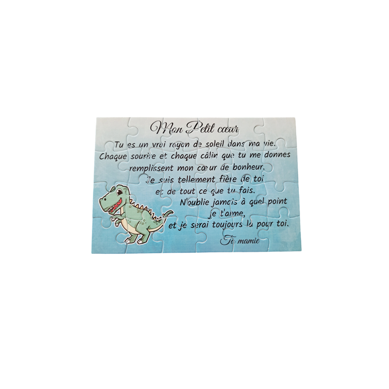 Le puzzle est livré avec un petit sachet (le sachet peut être, beige, rouge, etc... selon mon stock)