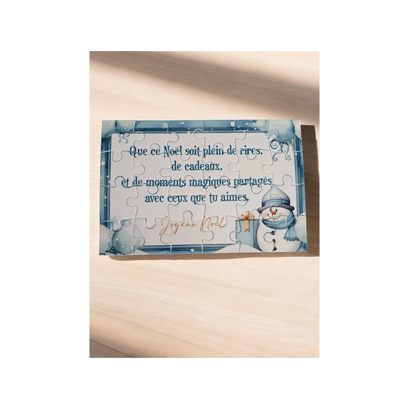 Offrez un moment de magie avec notre puzzle de Noël ! Ce puzzle de 24 pièces (16,5 cm x 11 cm), orné d’un joli texte, est parfait pour célébrer l’esprit de Noël. À partager en famille ou entre amis, ce cadeau personnalisé rappellera les moments chaleureux de la saison des fêtes. Un présent original, idéal pour glisser un message festif et créer de beaux souvenirs !