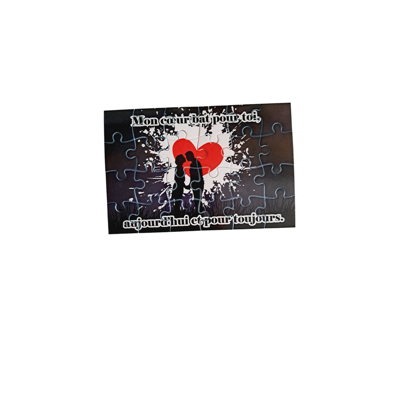 Exprimez vos sentiments avec un puzzle personnalisé unique pour l'être aimé ! Ce puzzle de 16,5 cm x 11 cm, composé de 24 pièces, cache un message d'amour à découvrir pièce par pièce. Livré avec un élégant pochon, il est prêt à être offert pour un moment de tendresse inoubliable. Une attention délicate et originale qui fait battre le cœur."