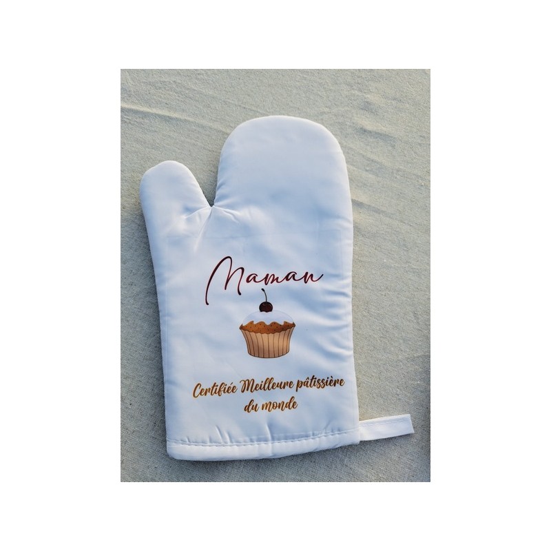 Célébrez les talents sucrés de votre maman avec ce lot de gant et manique personnalisés. Avec l’inscription "Maman certifiée meilleure pâtissière du monde", ces accessoires rendent hommage à toutes ses délicieuses créations !