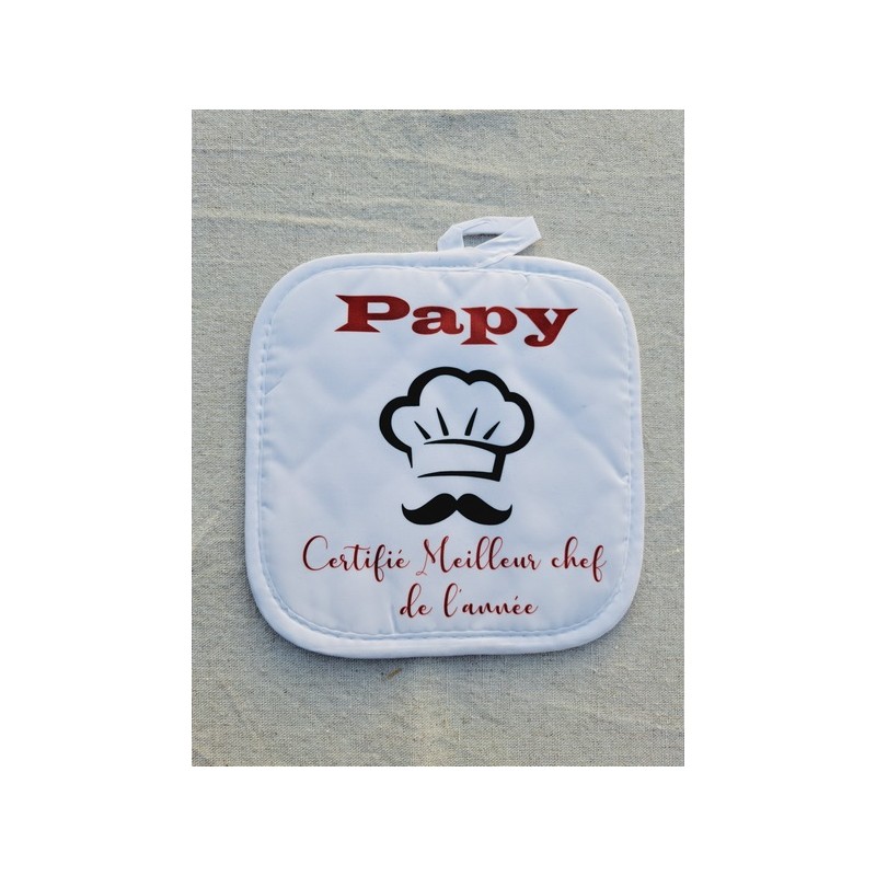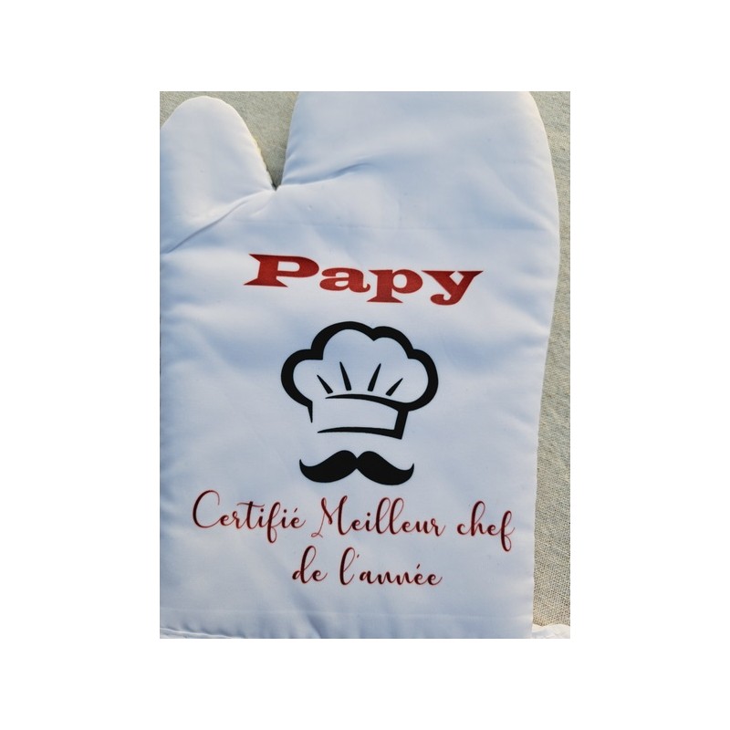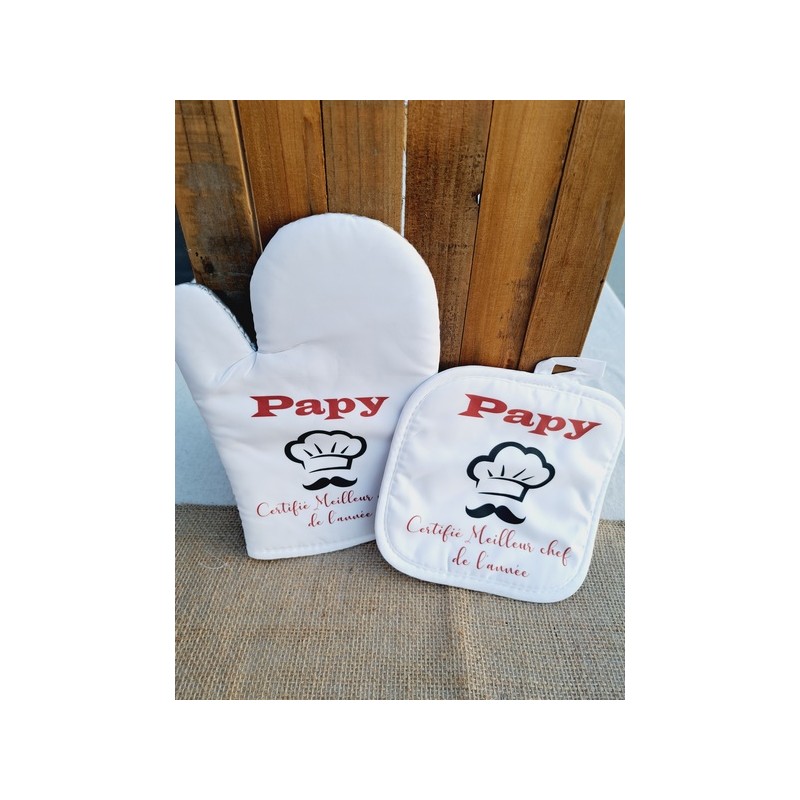 Mettez à l’honneur le talent culinaire de votre papy avec ce lot de gant et manique personnalisés. L’inscription "Papy certifié meilleur chef de l'année" est parfaite pour célébrer ses recettes uniques et ses moments en cuisine.