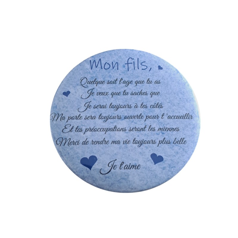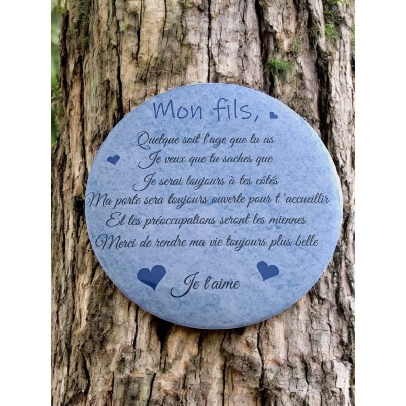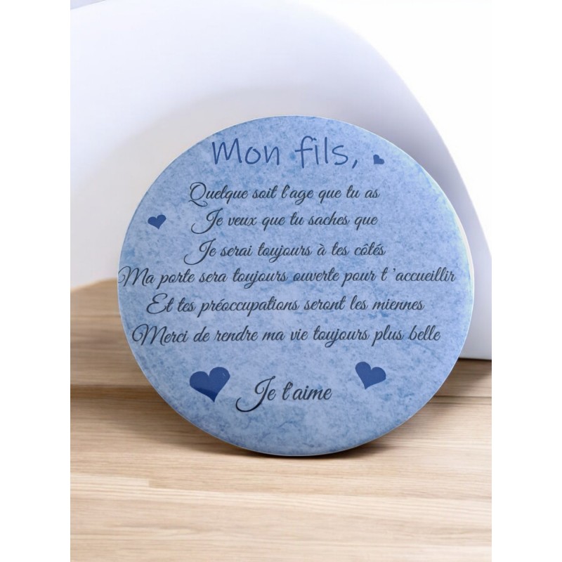 Offrez à votre fils cet aimant rond de 7,5 cm de diamètre, décoré d’un message plein d’amour et de fierté. Une belle façon de lui rappeler à quel point il est important pour vous. Un petit cadeau unique et symbolique, parfait pour toutes les occasions !