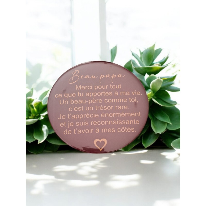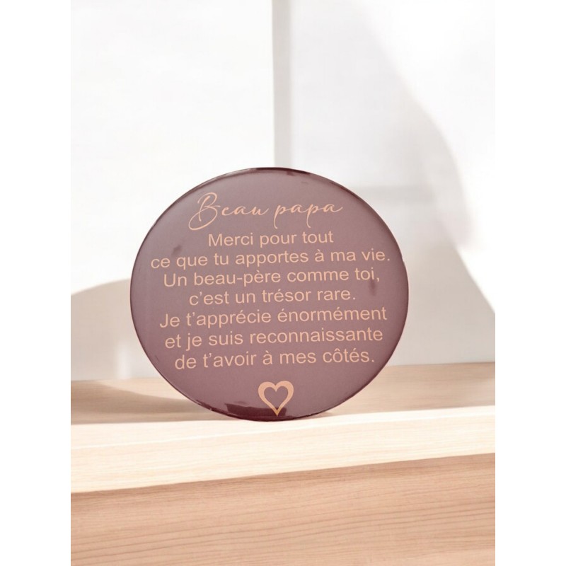 Surprenez votre beau-père avec cet aimant rond de 7,5 cm de diamètre. Avec un message attentionné et plein de reconnaissance, il est parfait pour lui témoigner votre affection. Un petit cadeau original qui fera plaisir à coup sûr !
