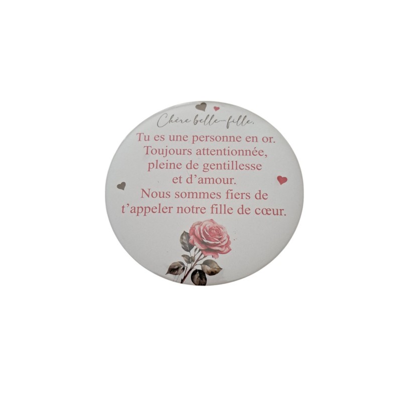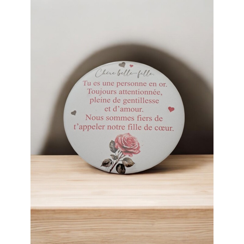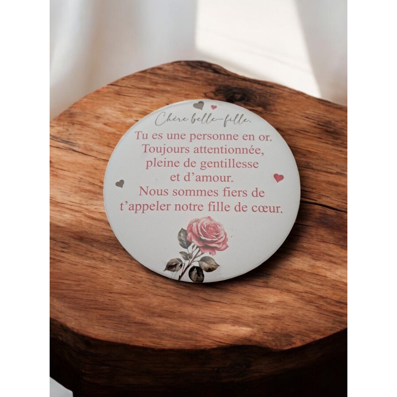 Faites plaisir à votre belle-fille avec cet aimant rond de 7,5 cm de diamètre. Avec un message tendre et personnalisé, il est parfait pour lui rappeler à quel point elle compte pour vous. Un petit cadeau attentionné qui fera toute la différence !