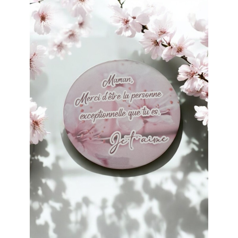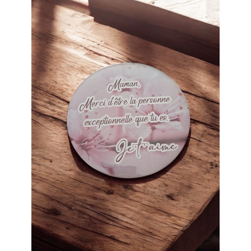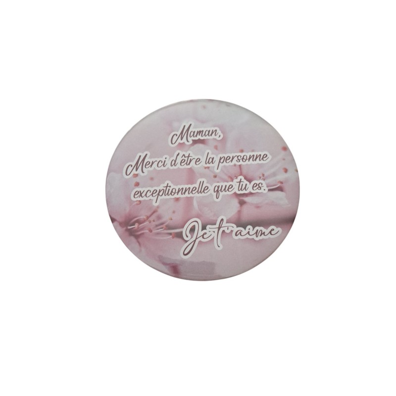 Faites plaisir à votre maman avec cet aimant rond de 7,5 cm de diamètre, orné d’un joli texte personnalisé. Idéal pour ajouter une touche d’amour au frigo ou à tout support magnétique, cet aimant est une belle façon de lui rappeler chaque jour combien elle est spéciale pour vous. Un petit cadeau plein de douceur pour une maman exceptionnelle !