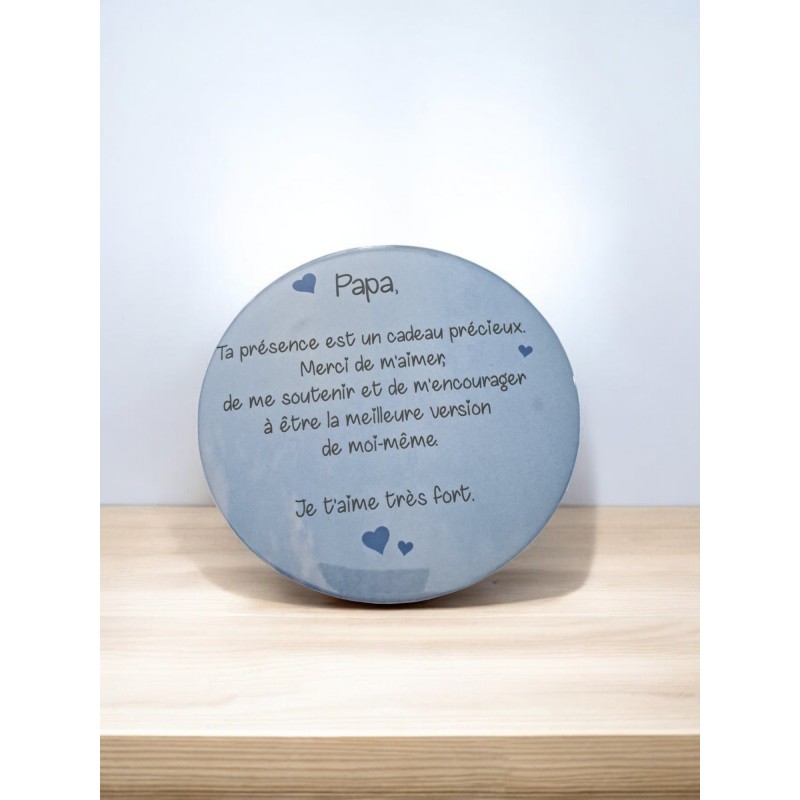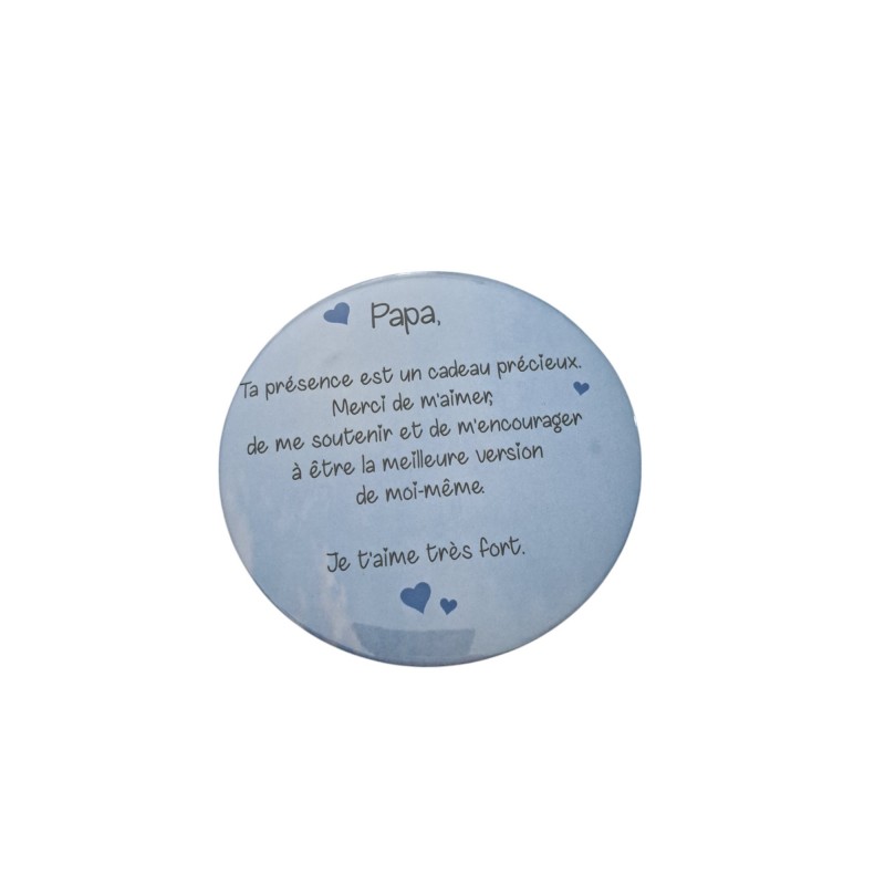 Offrez un petit cadeau plein de tendresse à votre papa avec cet aimant rond de 7,5 cm de diamètre, décoré d’un joli texte personnalisé. Parfait pour décorer le frigo ou tout autre support magnétique, cet aimant est une belle façon de lui rappeler chaque jour combien il est important pour vous. Une attention simple et touchante pour un papa exceptionnel !