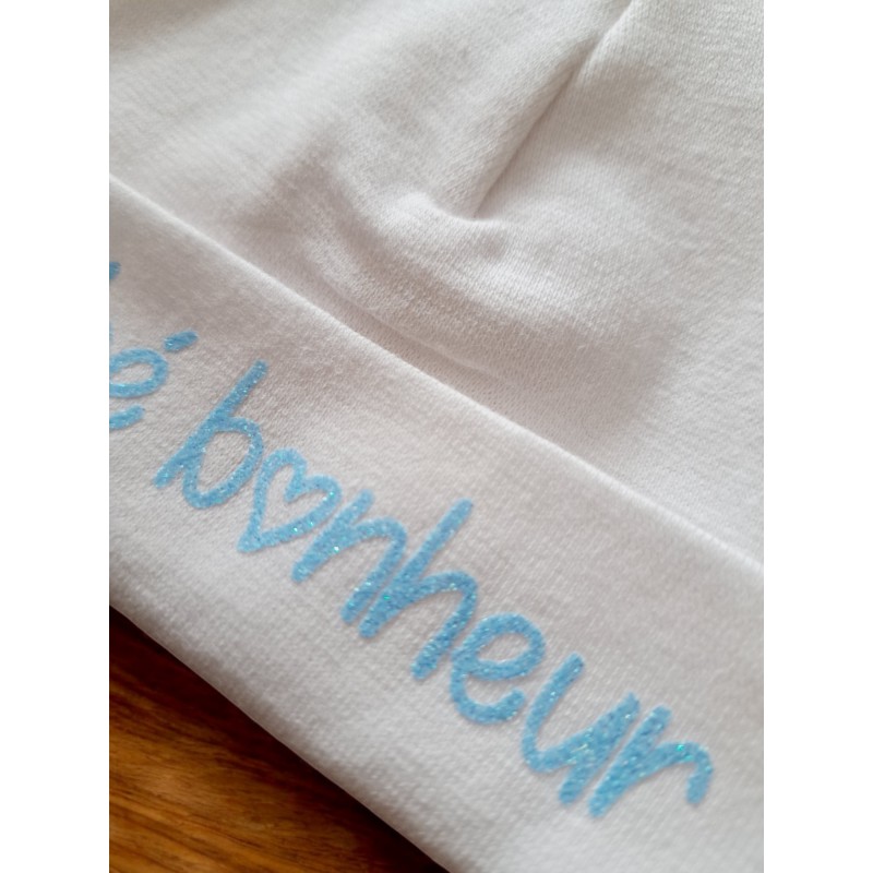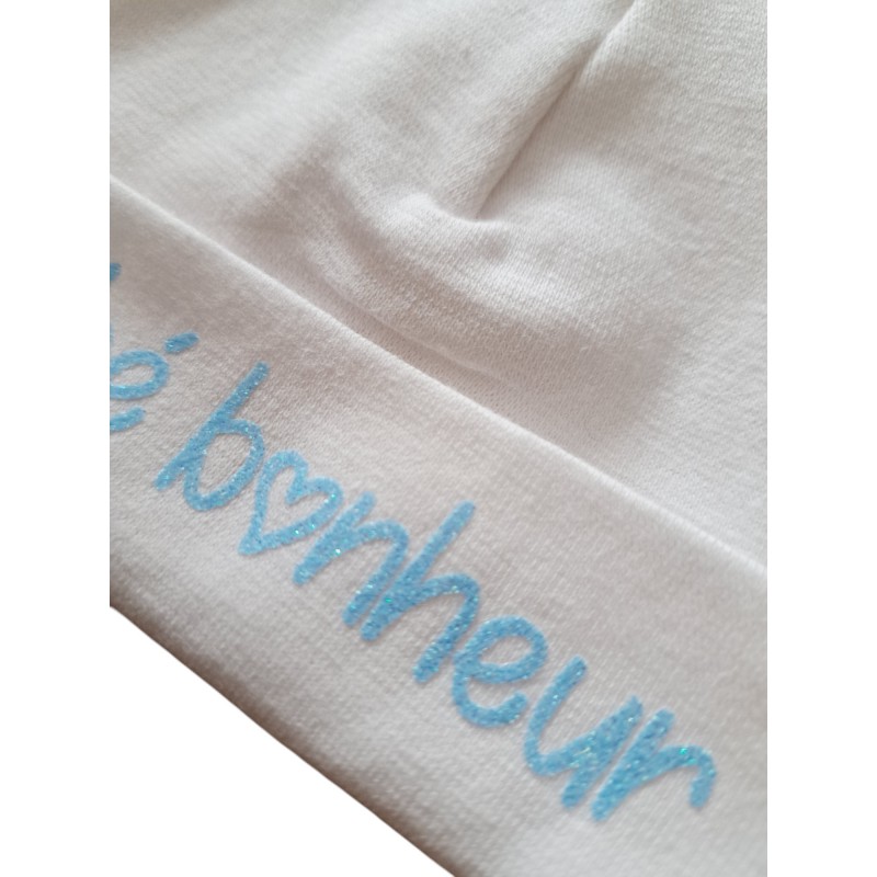 Offrez à votre tout-petit un bonnet doux et confortable, parfait pour ses premiers instants de vie. Conçu pour apporter chaleur et délicatesse, ce bonnet de naissance stretch ajoute une touche unique avec cette personnalisation.