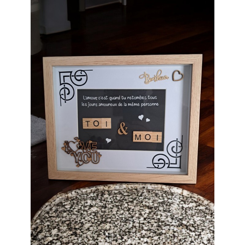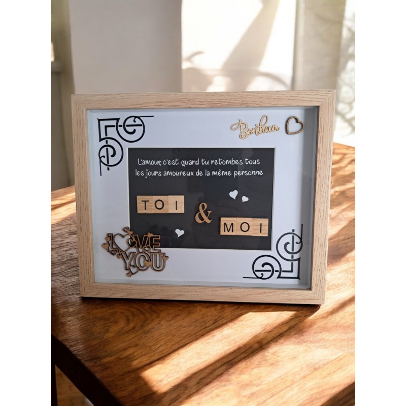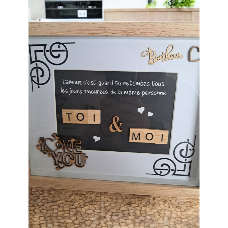 Toi & Moi, je t'aime - Cadre lettres façon scrabble