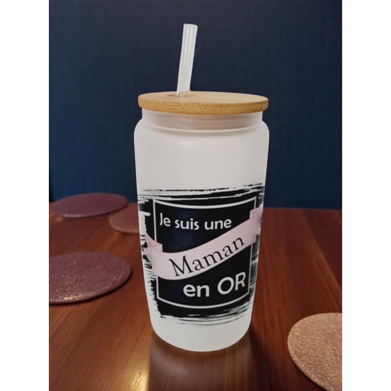 - Une élégante canette en verre avec bouchon en bois,