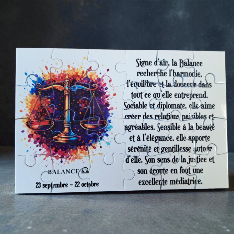 Chaque puzzle est illustré avec le signe du zodiaque de votre choix pour un cadeau unique et personnalisé.