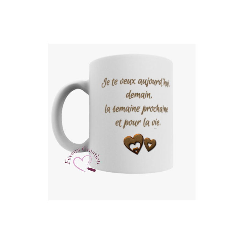 Mug "Je te veux aujourd'hui, demain, la semaine prochaine et pour la vie."