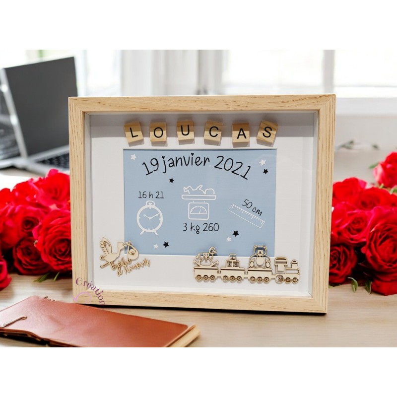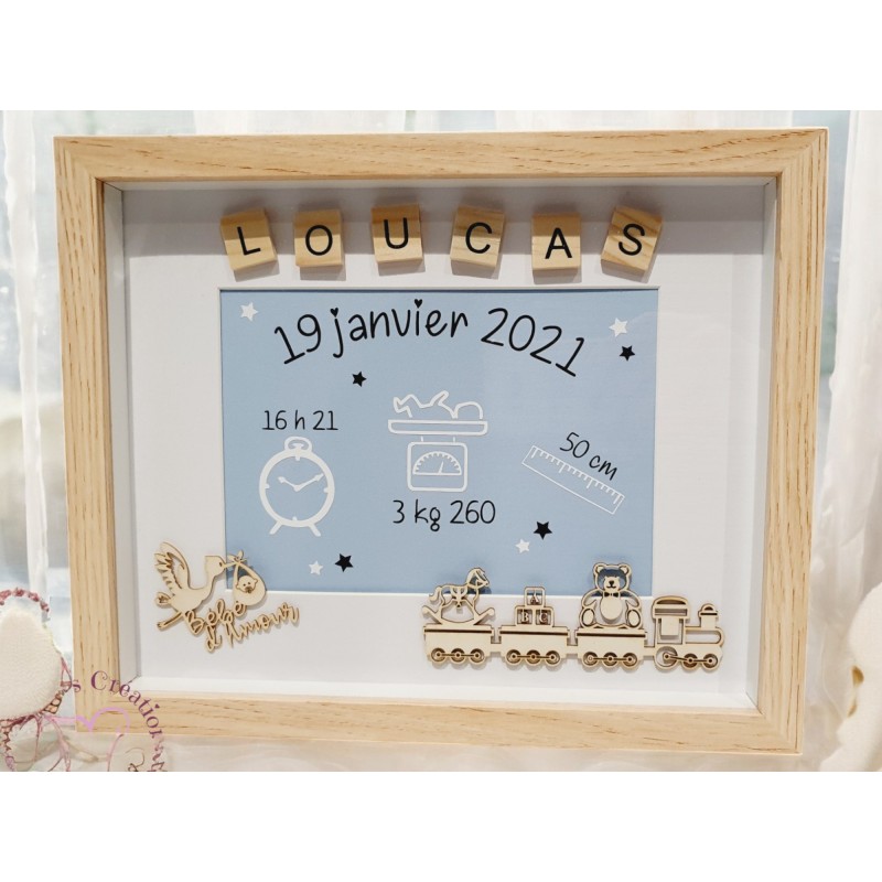 Offrez un cadeau original et plein d’émotion avec ce cadre de naissance personnalisé, spécialement conçu pour immortaliser les premiers instants de vie de votre petit trésor. Ce cadre unique met en valeur la date, l’heure, le poids et la taille de naissance, pour un souvenir précieux qui traverse le temps.