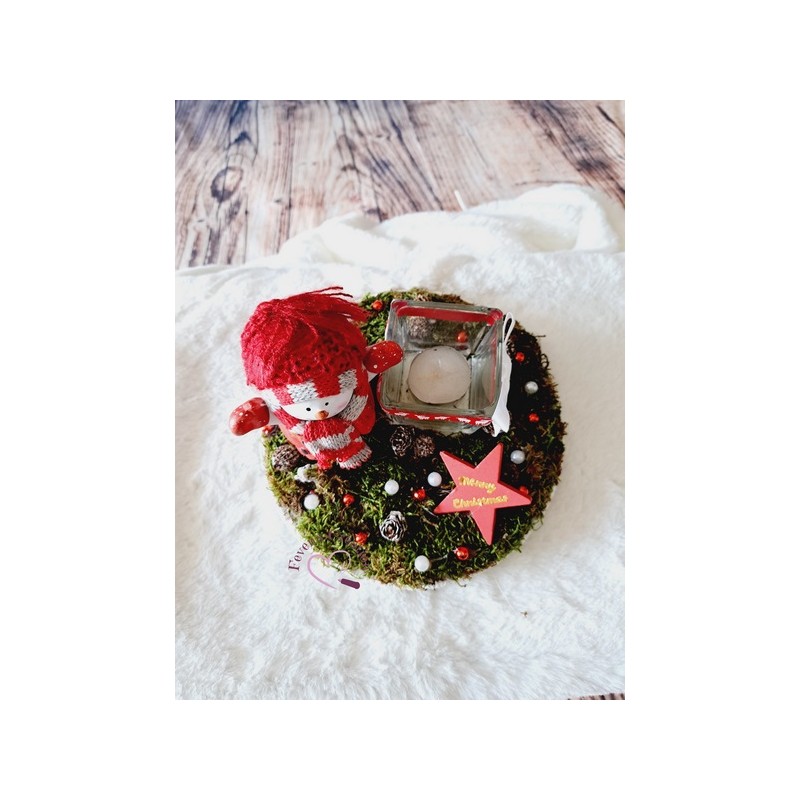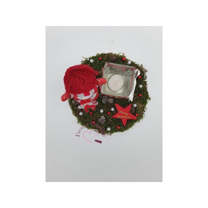 Harmonieusement décoré par des pommes de pin, boules et autres petites décorations, il trouvera sa place au centre de votre table ou en décoration sur un meuble. Il est également composé d'un bougeoir (vendu avec une bougie chauffe-plat).