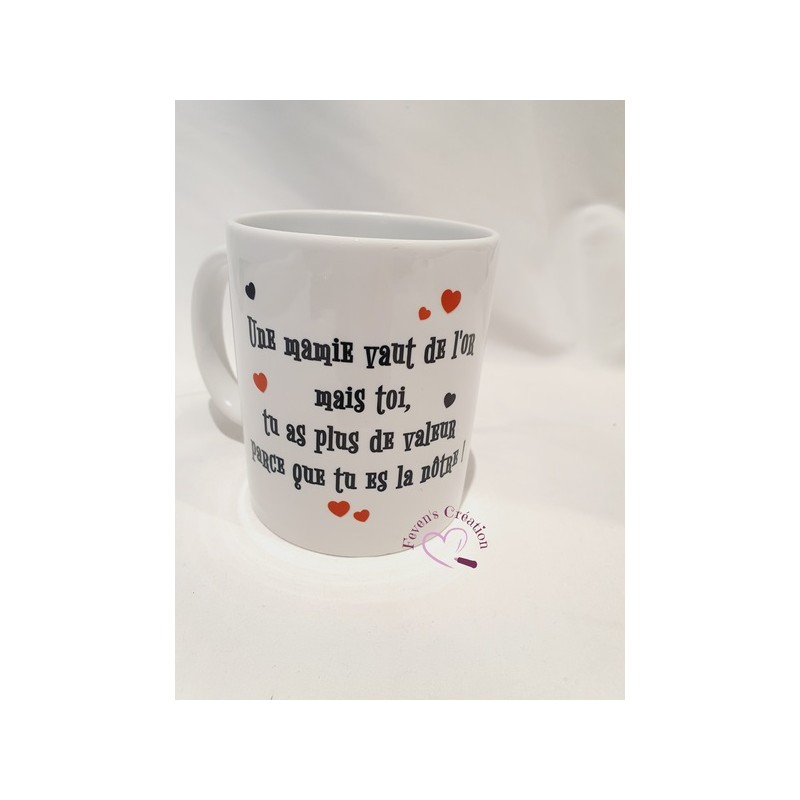 Ce joli mug est un cadeau original à offrir à sa mamie pour son anniversaire, la fête des grands-mères, Noël ou sans évènement particulier mais juste lui dire je t'aime.