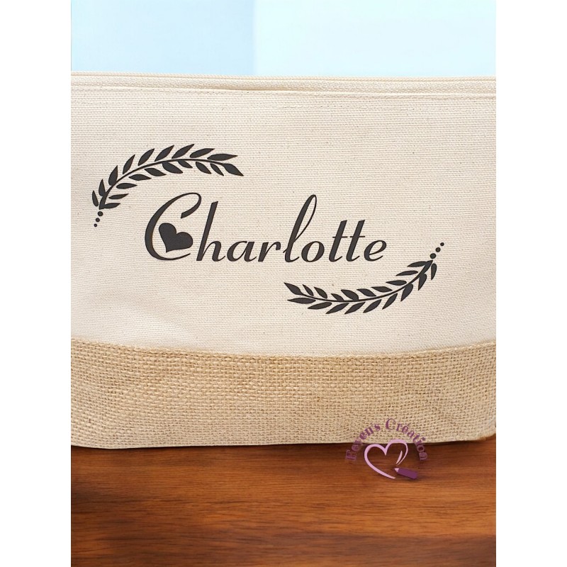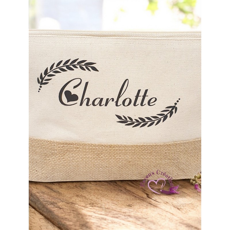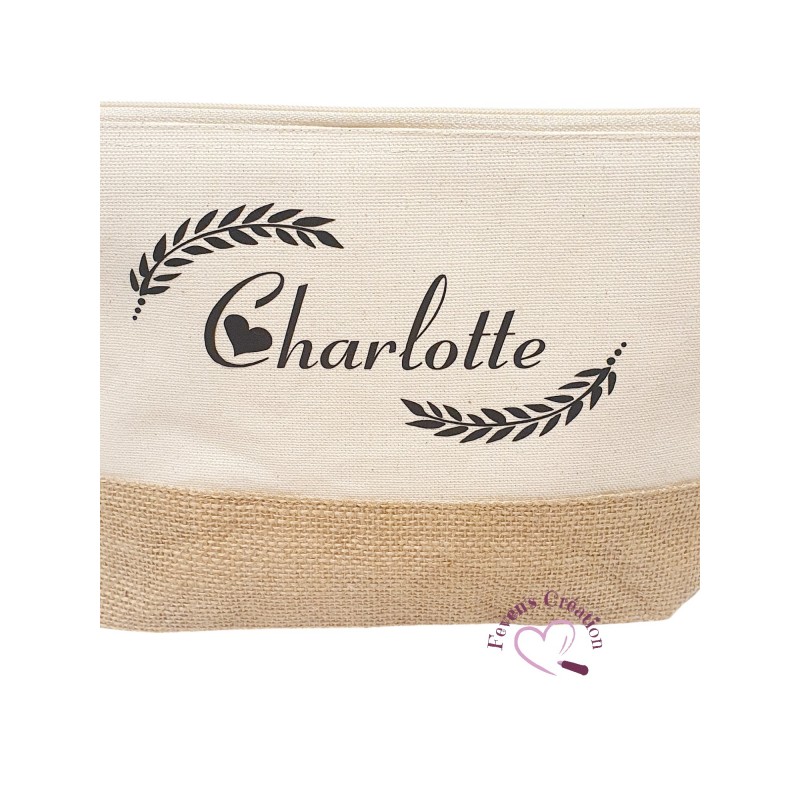 Matière : 100% coton avec base contrastée en jute naturelle laminée