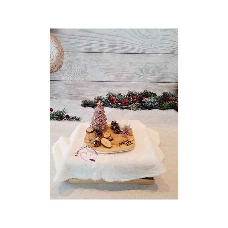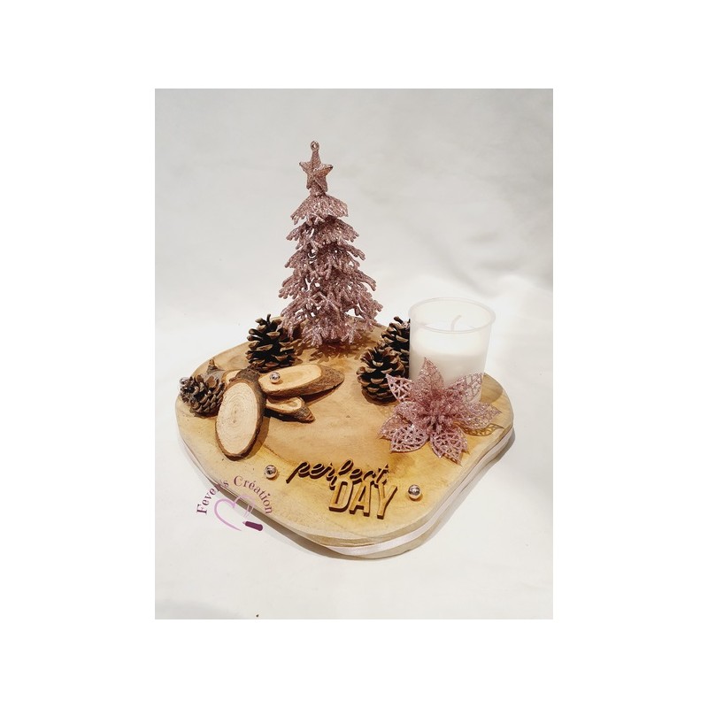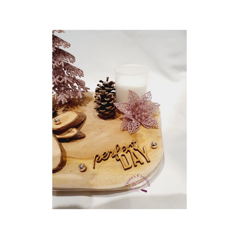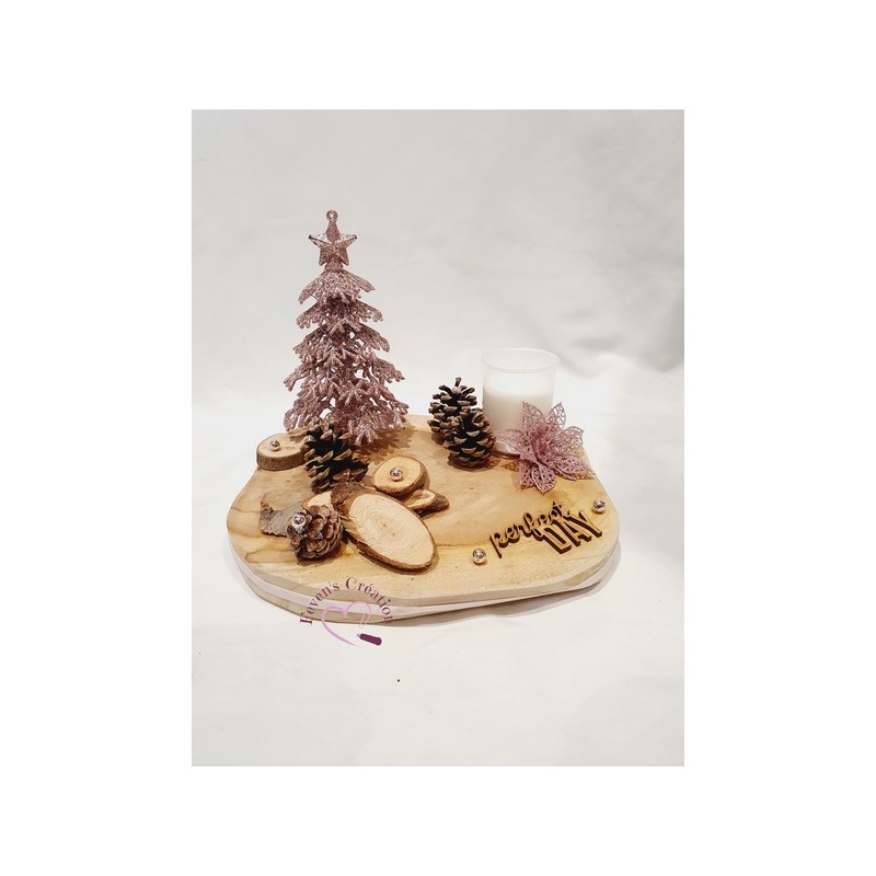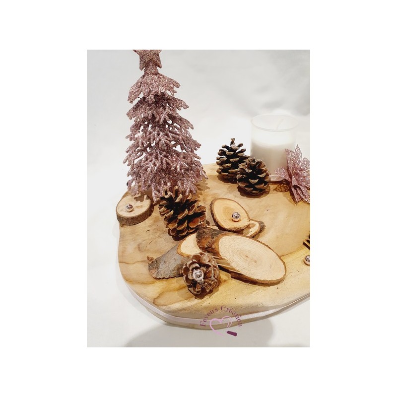 Harmonieusement décoré par des pommes de pin, boules et autres petites décorations, il trouvera sa place au centre de votre table ou en décoration sur un meuble.