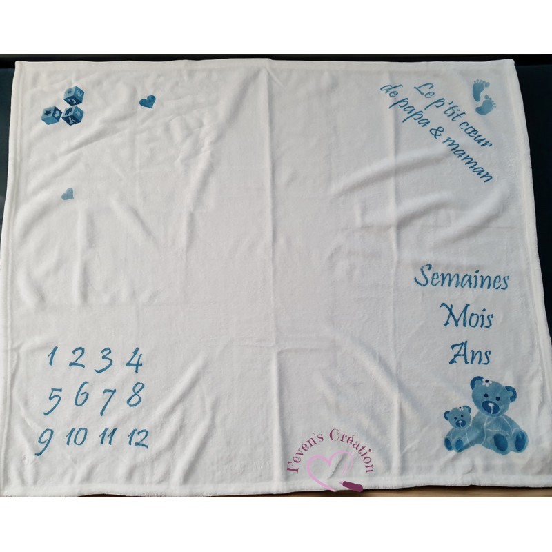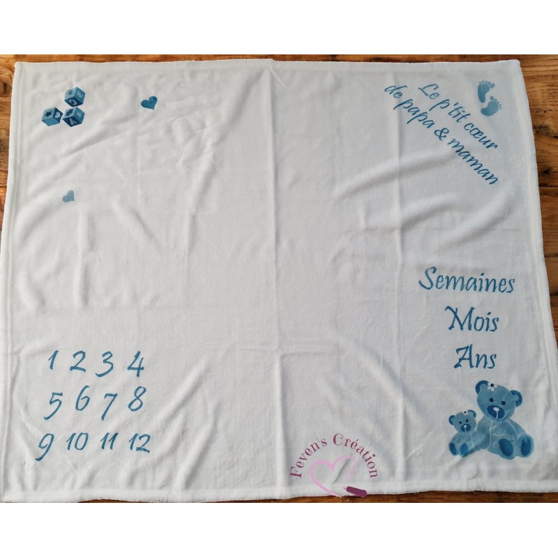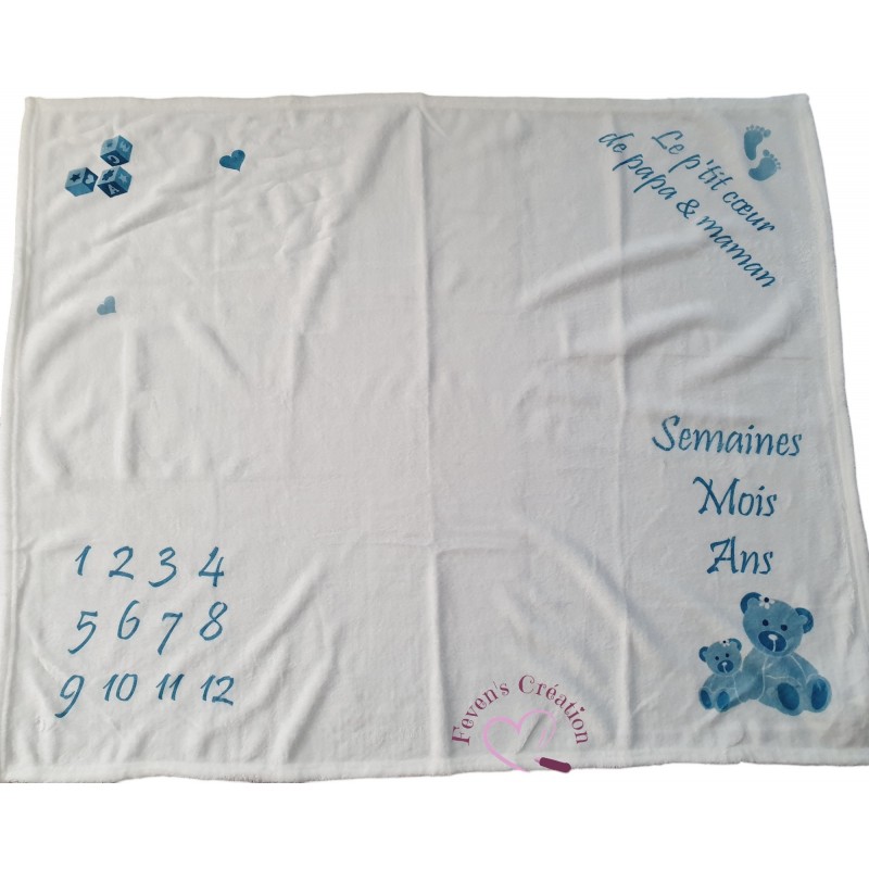 Immortalisez chaque étape de la croissance de votre enfant avec cette couverture évolution bébé personnalisée. Conçue pour créer des souvenirs inoubliables, cette couverture vous permet de photographier votre bébé dès la naissance et de suivre mois après mois son développement.