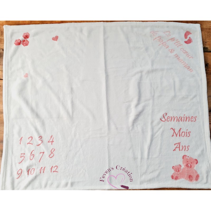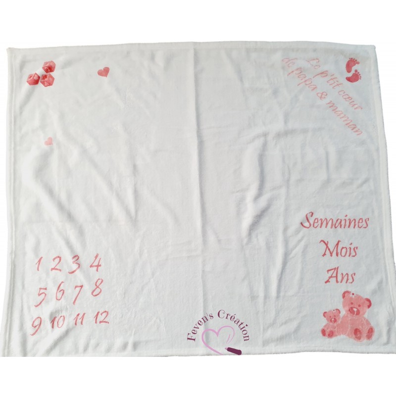 Immortalisez chaque étape de la croissance de votre enfant avec cette couverture évolution bébé personnalisée. Conçue pour créer des souvenirs inoubliables, cette couverture vous permet de photographier votre bébé dès la naissance et de suivre mois après mois son développement.