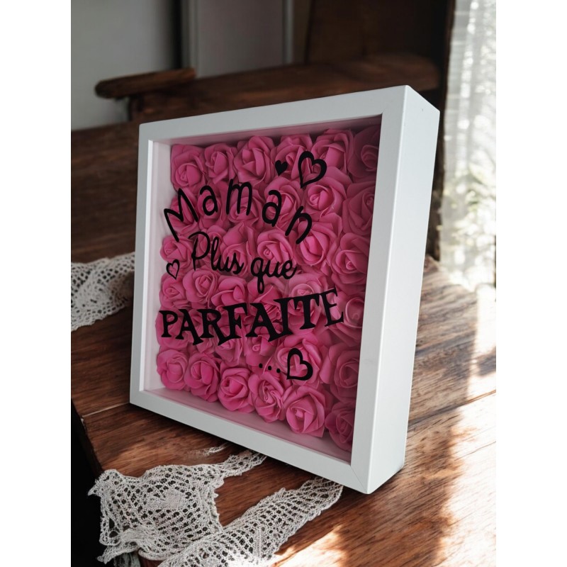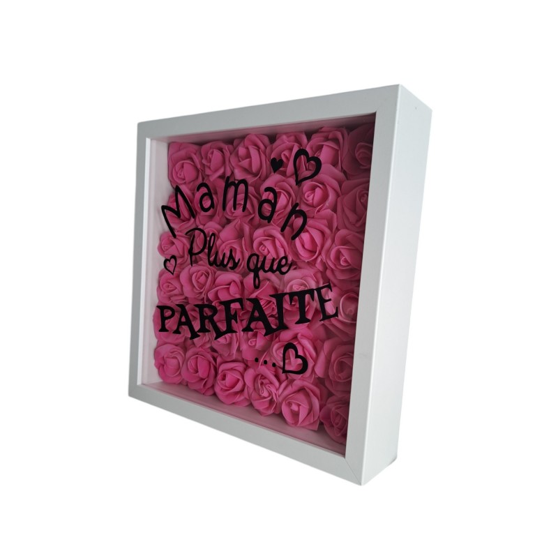 Célébrez l'amour et la beauté de votre maman avec ce joli cadre fleuri personnalisé. Arborant l'inscription "Maman plus que parfaite", ce cadre de 27 x 27 cm est le cadeau idéal pour exprimer toute votre affection et sublimer vos souvenirs les plus précieux.